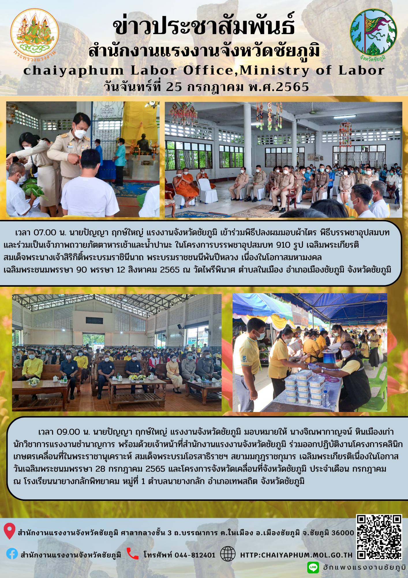ข่าวประชาสัมพันธ์สำนักงานแรงงานจังหวัดชัยภูมิ ประจำวันจันทร์ที่ 25 กรกฎาคม 2565