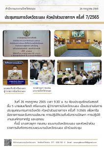 สรจ.ระนอง ร่วมประชุมคณะกรมการจังหวัด หัวหน้าส่วนราชการฯ ครั้งที่ 7/2565