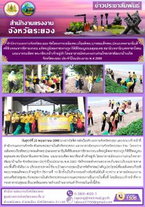 สำนักงานแรงงานจังหวัดระยอง จัดโครงการเฉลิมพระเกียรติพระบาทสมเด็จพระปรเมนทรรามาธิบดี ศรีสินทรมหาวชิราลงกรณ มหิศรภูมิพลราชวรางกูร กิติสิริสมบูรณอดุลยเดช สยามินทราธิเบศรราชวโรดม บรมนารถบพิตร พระวชิรเกล้าเจ้าอยู่หัว โดยอาสาสมัครแรงงงานร่วมใจอาสาพัฒนาบ้านเกิด จังหวัดระยอง ประจำปีงบประมาณ พ.ศ.2565