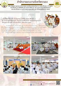 สรจ.ระนอง ร่วมพิธีเจริญพระพุทธมนต์ถวายพระพรชัยมงคลแด่พระบาทสมเด็จพระเจ้าอยู่หัว สมเด็จพระนางสิริกิติ์ พระบรมราชินีนาถ พระบรมราชชนนีพันปีหลวง และสมเด็จพระนางเจ้าฯพระบรมราชินี ประจำปีพุทธศักราช 2565