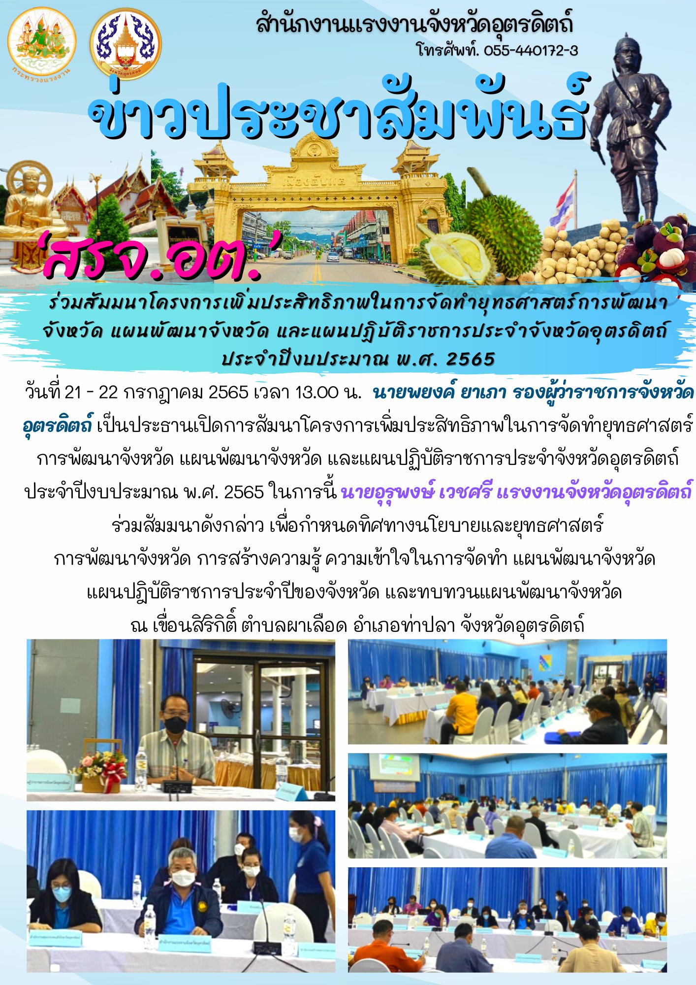 ‘สรจ.อต.’ ร่วมสัมมนาโครงการเพิ่มประสิทธิภาพในการจัดทำยุทธศาสตร์การพัฒนาจังหวัด แผนพัฒนาจังหวัด และแผนปฏิบัติราชการประจำจังหวัดอุตรดิตถ์ ประจำปีงบประมาณ พ.ศ. 2565