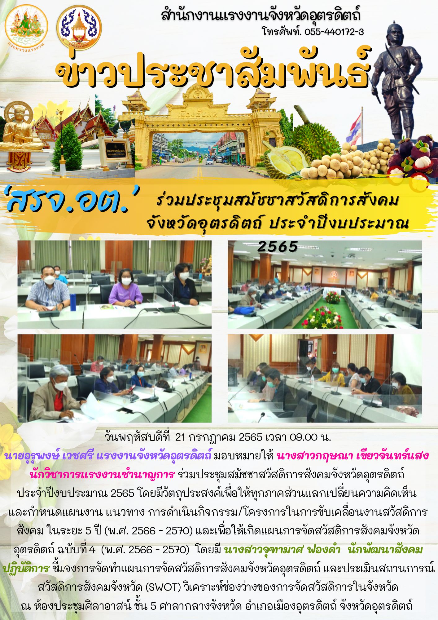 สรจ.อุตรดิตถ์ ร่วมประชุมสมัชชาสวัสดิการสังคม จังหวัดอุตรดิตถ์ ประจำปีงบประมาณ 2565