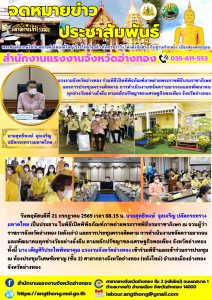 แรงงานจังหวัดอ่างทอง ร่วมพิธีเปิดพิพิธภัณฑ์ภาพถ่ายพระราชพิธีบรมราชาภิเษกและการประชุมตรวจติดตาม การดำเนินงานขจัดความยากจนและพัฒนาคนทุกช่วงวัยอย่างยั่งยืน ตามหลักปรัชญาของเศรษฐกิจพอเพียง จังหวัดอ่างทอง