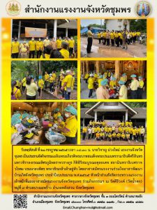 แรงงานจังหวัดชุมพรประธานจัดกิจกรรมเฉลิมพระเกียรติพระบาทสมเด็จพระปรเมนทรรามาธิบดีศรีสินทร มหาวชิราลงกรณมหิศรภูมิพลราชวรางกูร กิติสิริสมบูรณอดุลยเดช สยามินทราธิเบศราชวโรดม บรมนาถบพิตร พระวชิรเกล้าเจ้าอยู่หัว โดยอาสาสมัครแรงงานร่วมใจอาสาพัฒนาบ้านเกิดจังหวัดชุมพร ประจำปีงบประมาณ พ.ศ.2565