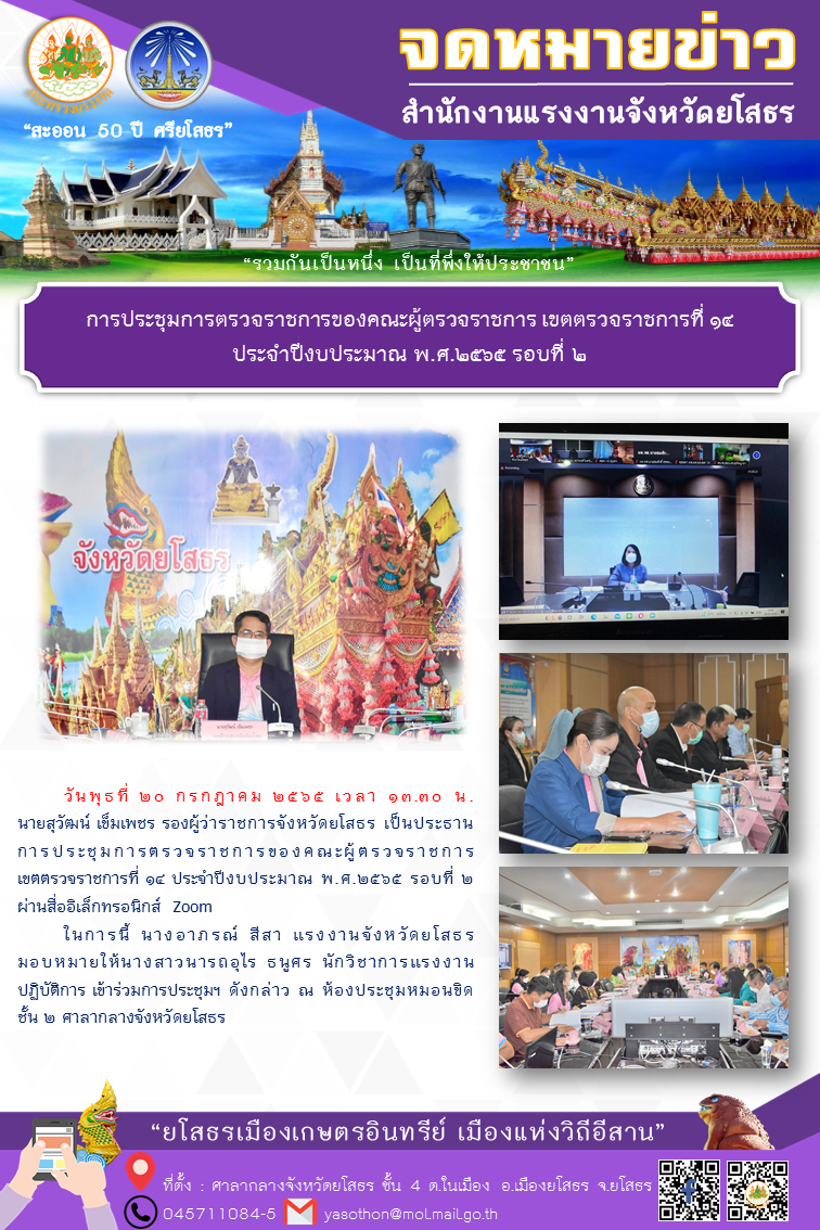 การประชุมการตรวจราชการของคณะผู้ตรวจราชการ เขตตรวจราชการที่ ๑๔ ประจำปีงบประมาณ พ.ศ.๒๕๖๕ รอบที่ ๒