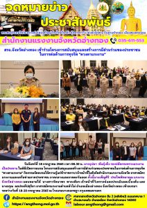 สรจ.จังหวัดอ่างทอง เข้าร่วมโครงการสนับสนุนและสร้างการมีส่วนร่วมของประชาชน ในการต่อต้านการทุจริต “ดวงตาแรงงาน”
