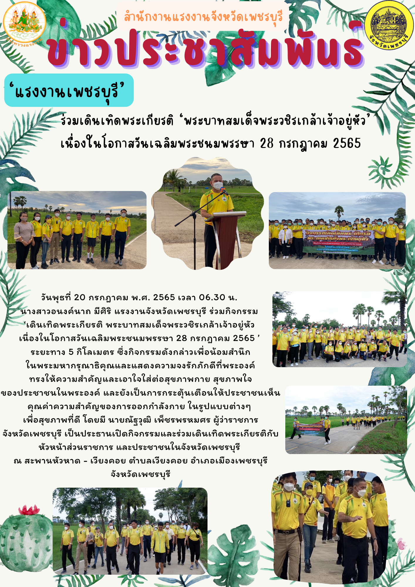 ‘แรงงานเพชรบุรี’ ร่วมเดินเทิดพระเกียรติ ‘พระบาทสมเด็จพระวชิรเกล้าเจ้าอยู่หัว’ เนื่องในโอกาสวันเฉลิมพระชนมพรรษา 28 กรกฎาคม 2565