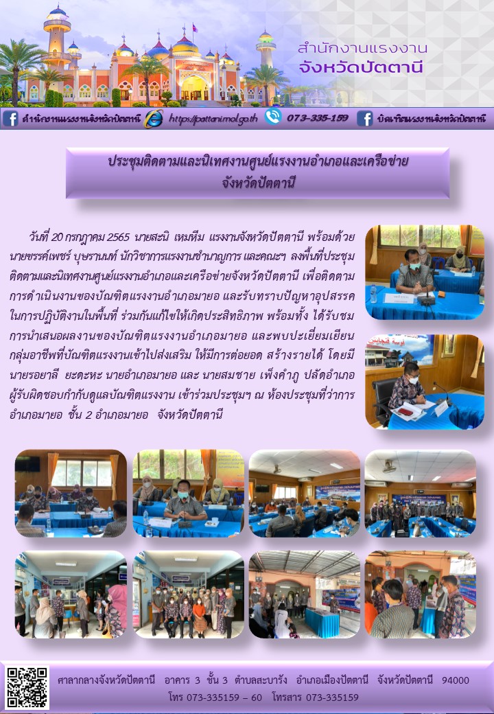 การประชุมติดตามและนิเทศงานศูนย์แรงงานอำเภอและเครือข่ายจังหวัดปัตตานี