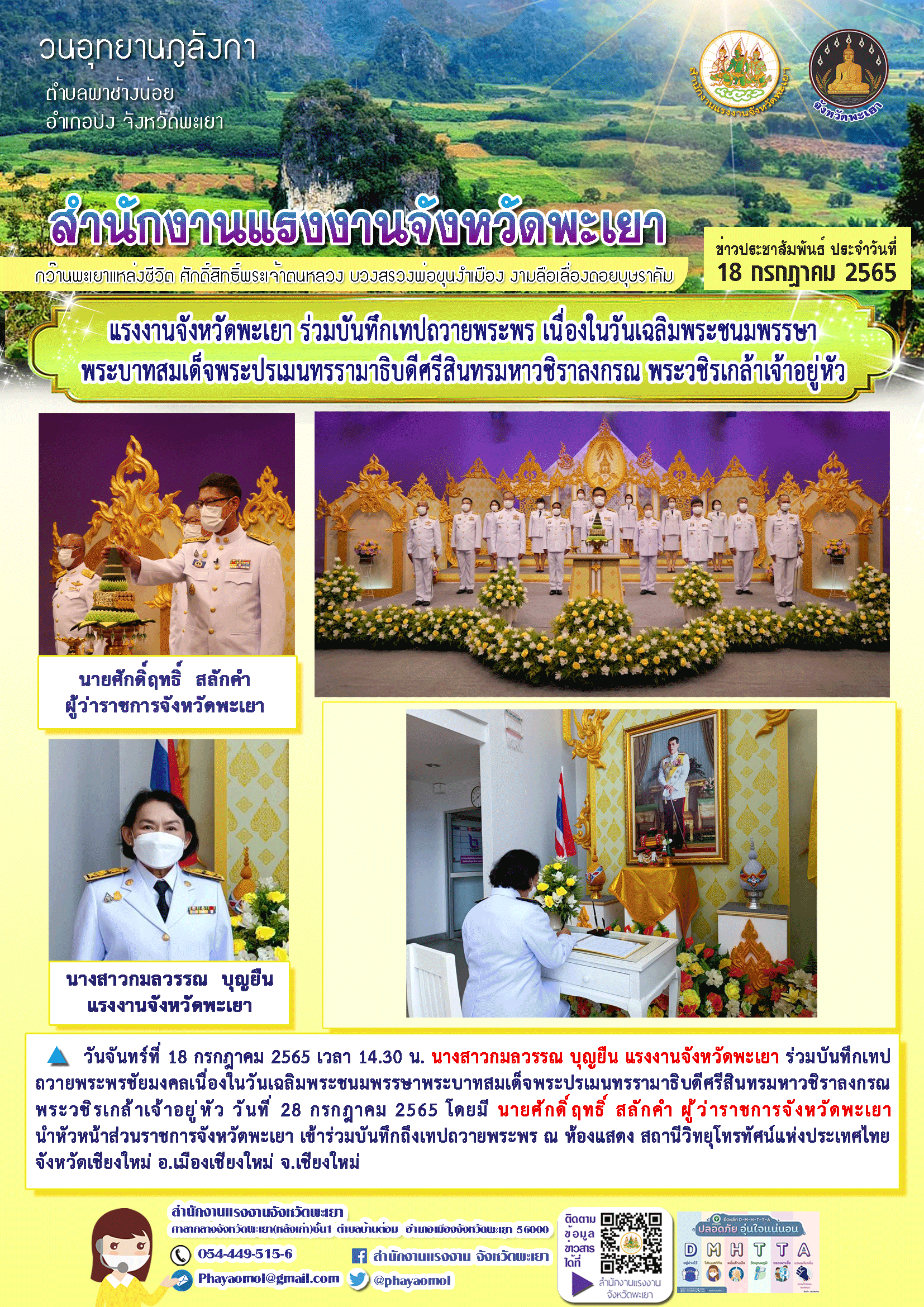 แรงงานจังหวัดพะเยา ร่วมบันทึกเทปถวายพระพร เนื่องในวันเฉลิมพระชนมพรรษาพระบาทสมเด็จพระปรเมนทรรามาธิบดีศรีสินทรมหาวชิราลงกรณ พระวชิรเกล้าเจ้าอยู่หัว