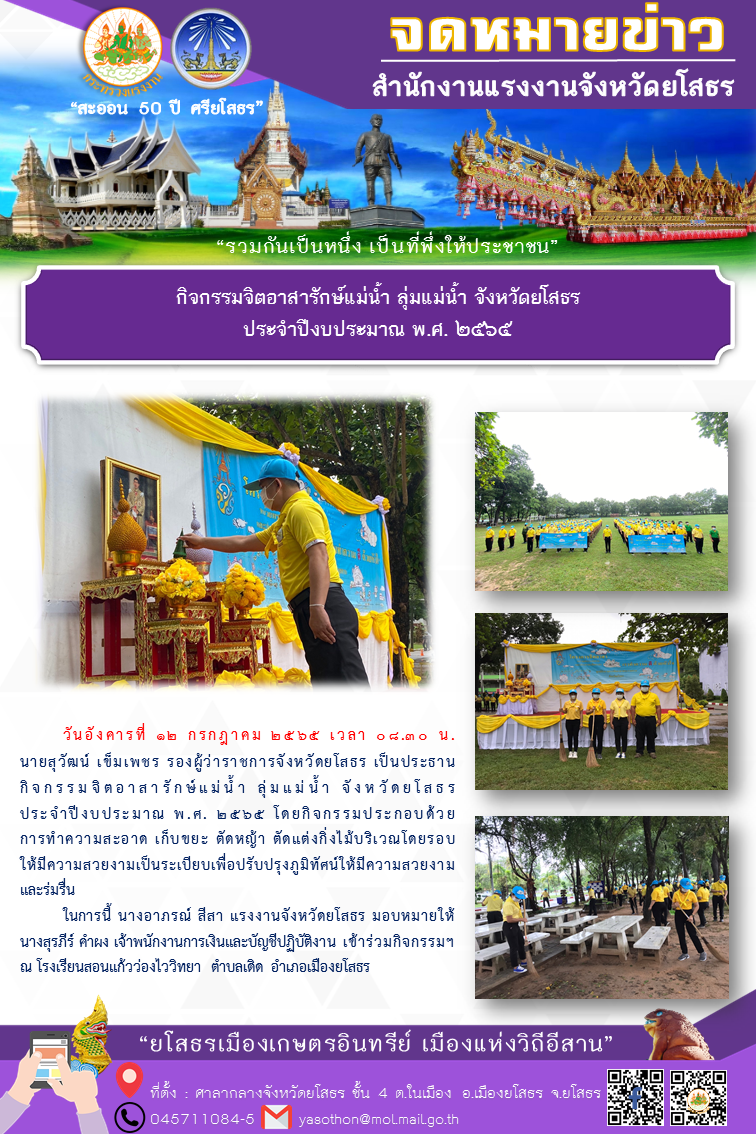 กิจกรรมจิตอาสารักษ์แม่น้ำ ลุ่มแม่น้ำ จังหวัดยโสธรประจำปีงบประมาณ พ.ศ. ๒๕๖๕