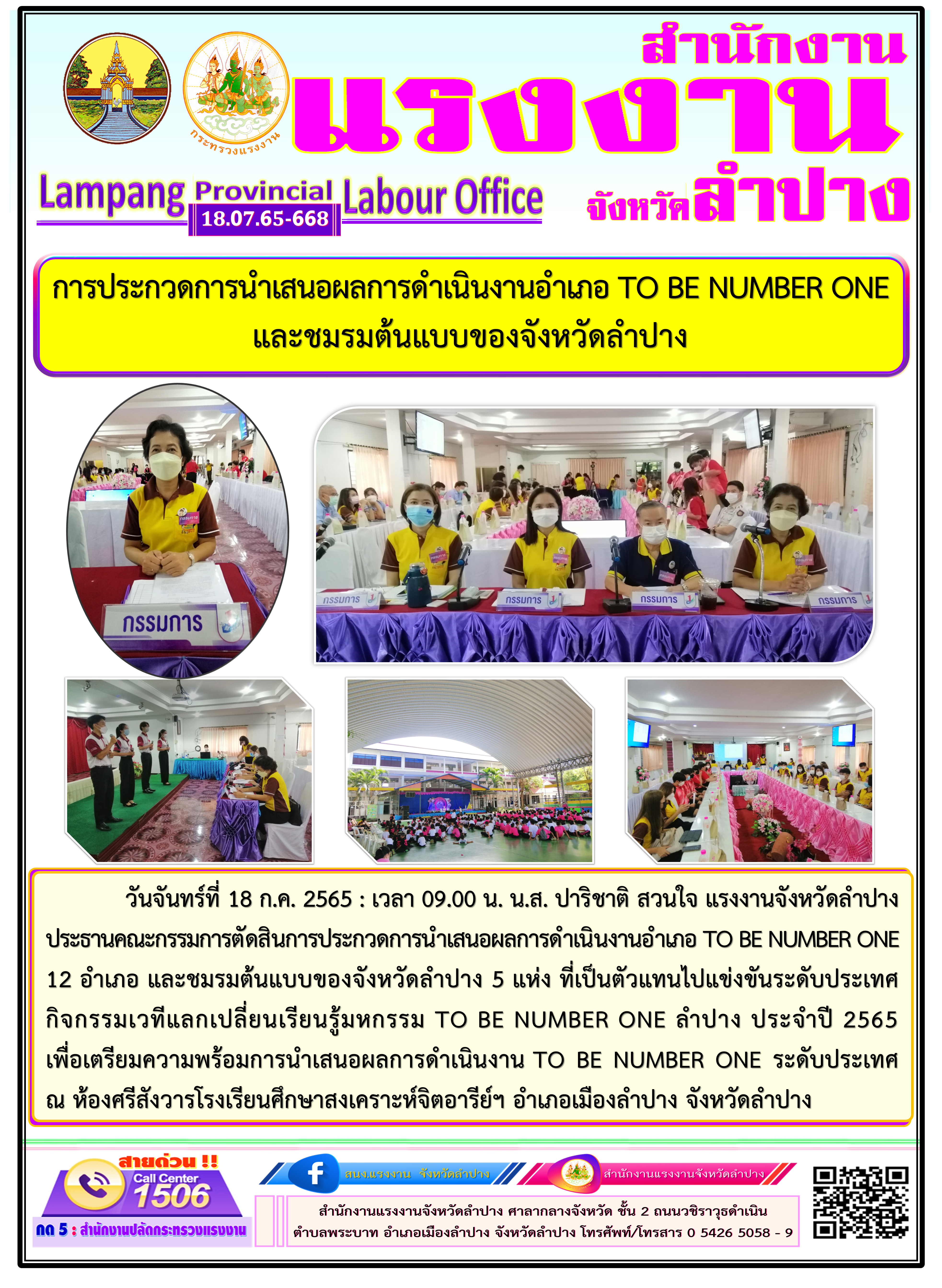 การประกวดการนำเสนอผลการดำเนินงานอำเภอ TO BE NUMBER ONE และชมรมต้นแบบของจังหวัดลำปาง