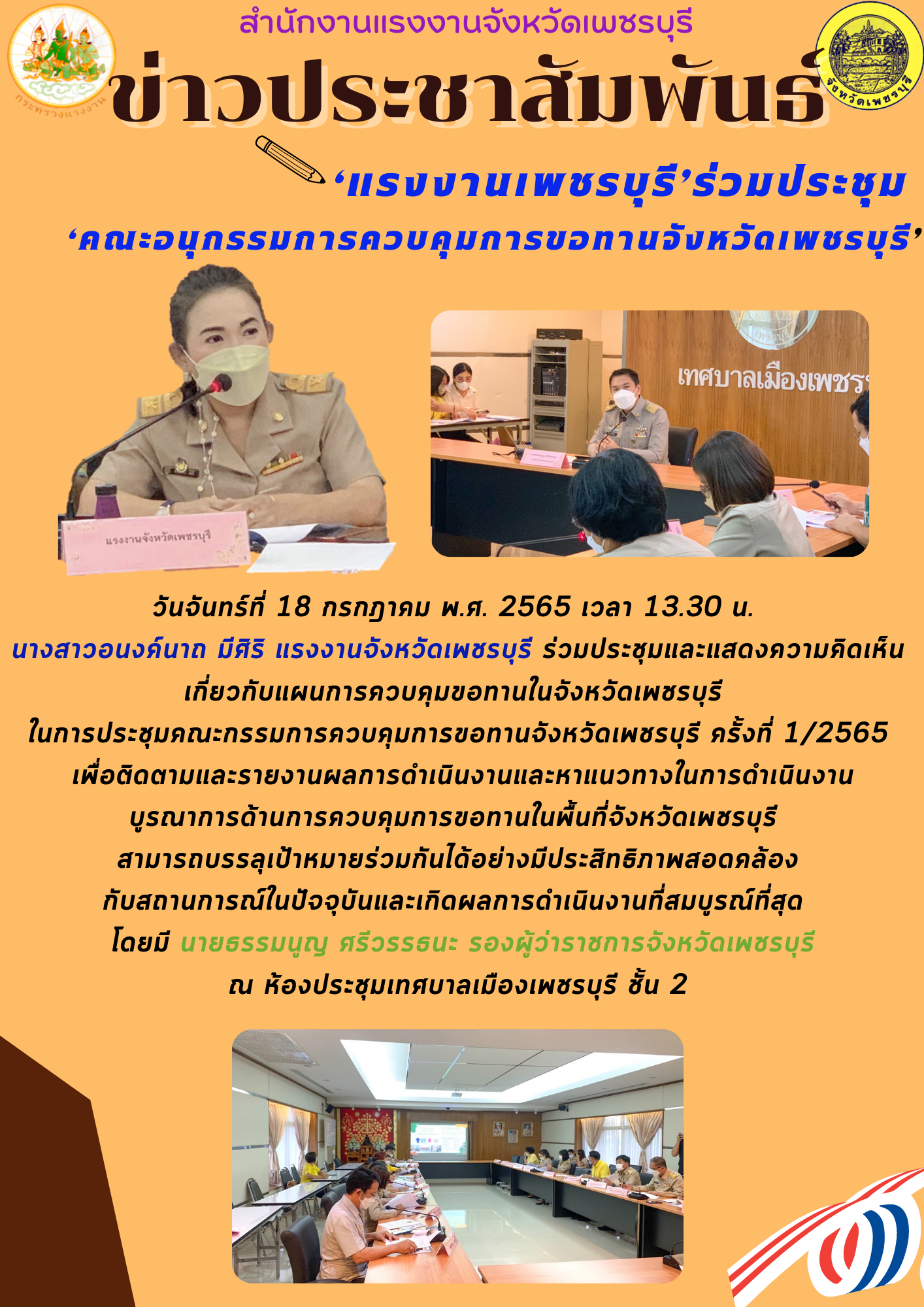 ‘แรงงานเพชรบุรี’ร่วมประชุม ‘คณะอนุกรรมการควบคุมการขอทานจังหวัดเพชรบุรี’