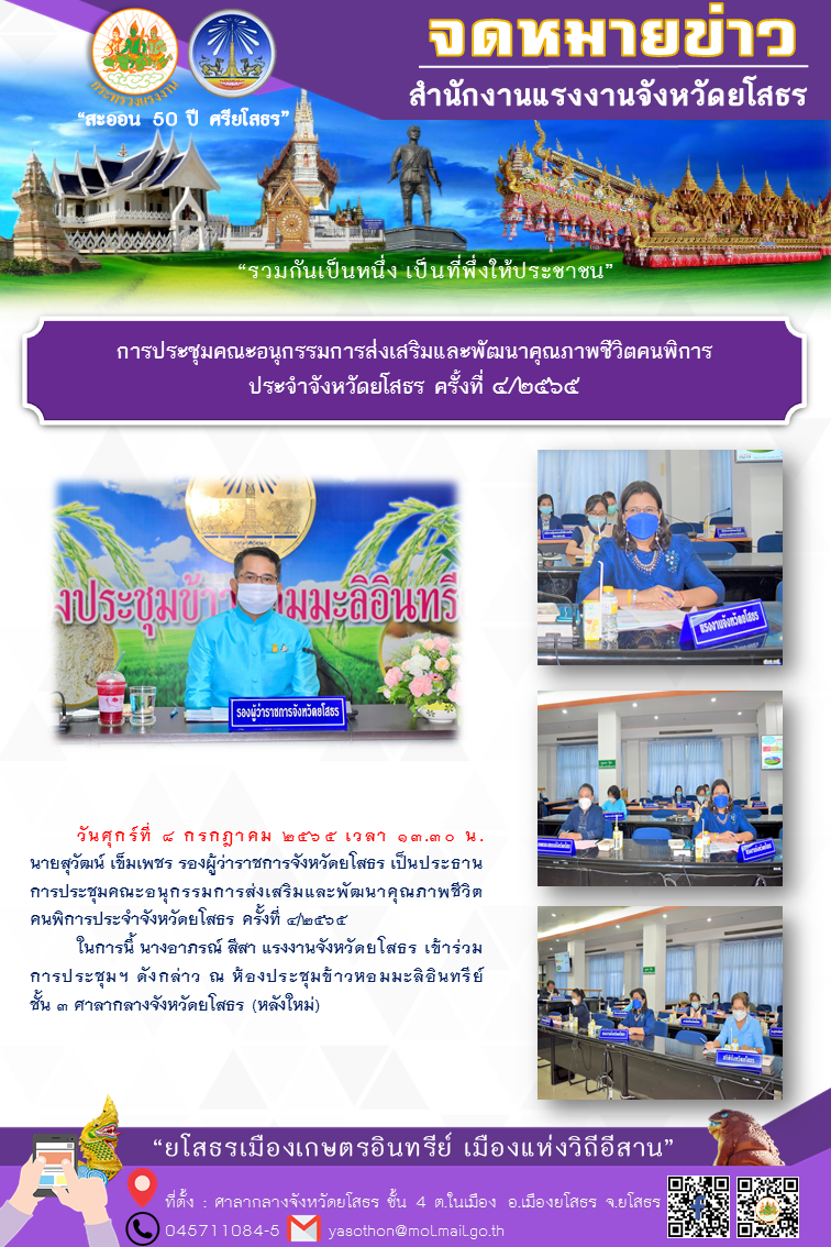 การประชุมคณะอนุกรรมการส่งเสริมและพัฒนาคุณภาพชีวิตคนพิการประจำจังหวัดยโสธร ครั้งที่ ๔/๒๕๖๕