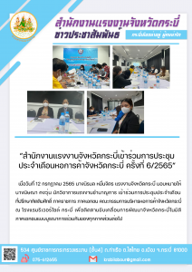 สำนักงานแรงงานจังหวัดกระบี่ประชุมแกนนำอาสาสมัครแรงงานจังหวัดกระบี่ ครั้งที่ 3/2565