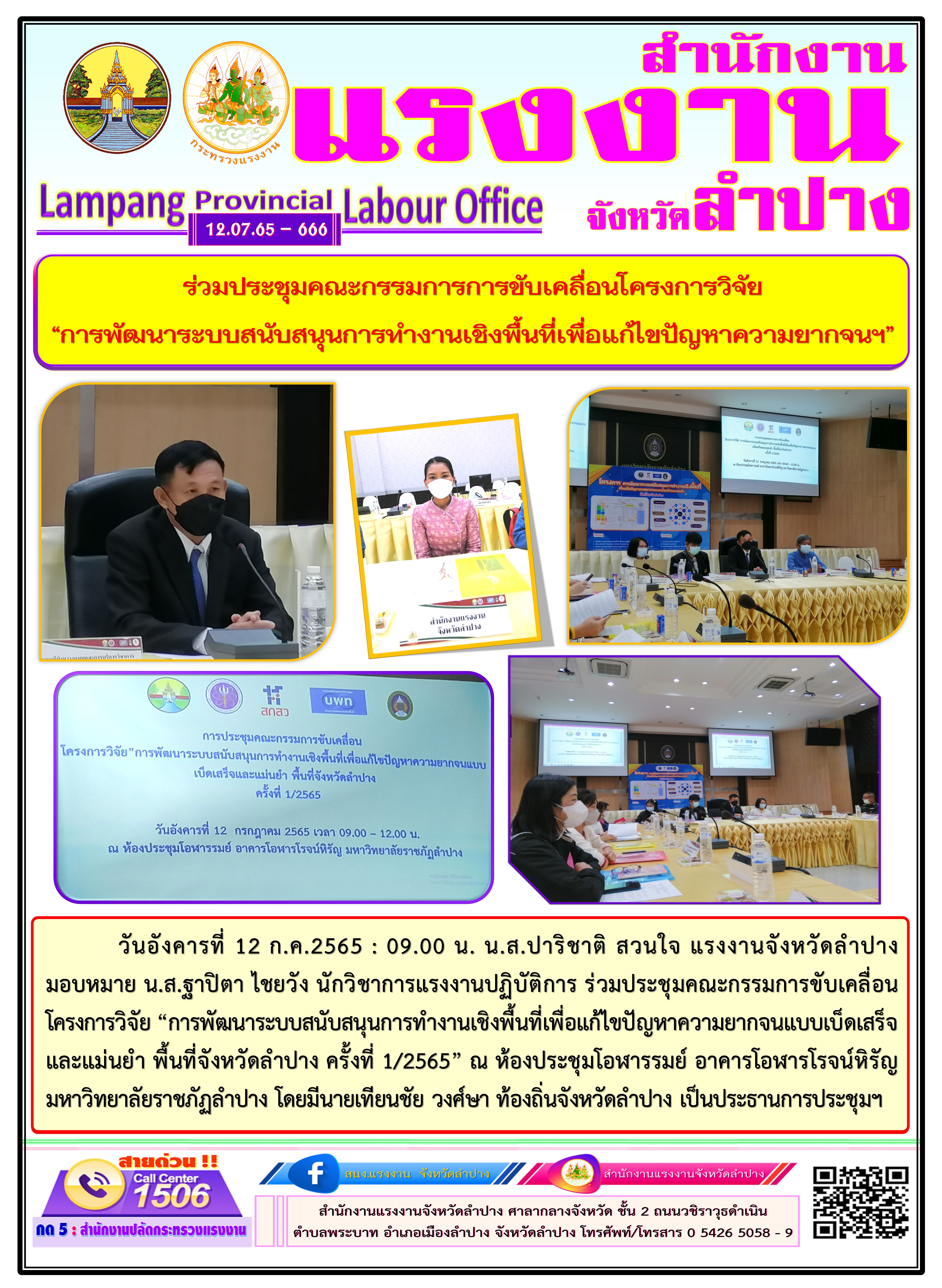 สรจ.ลำปาง ร่วมประชุมคณะกรรมการการขับเคลื่อนโครงการวิจัย “การพัฒนาระบบสนับสนุนการทำงานเชิงพื้นที่เพื่อแก้ไขปัญหาความยากจนฯ”