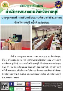 การประชุมคณะทำงานขับเคลื่อนแผนพัฒนากำลังแรงงานจังหวัดราชบุรี 2/2565