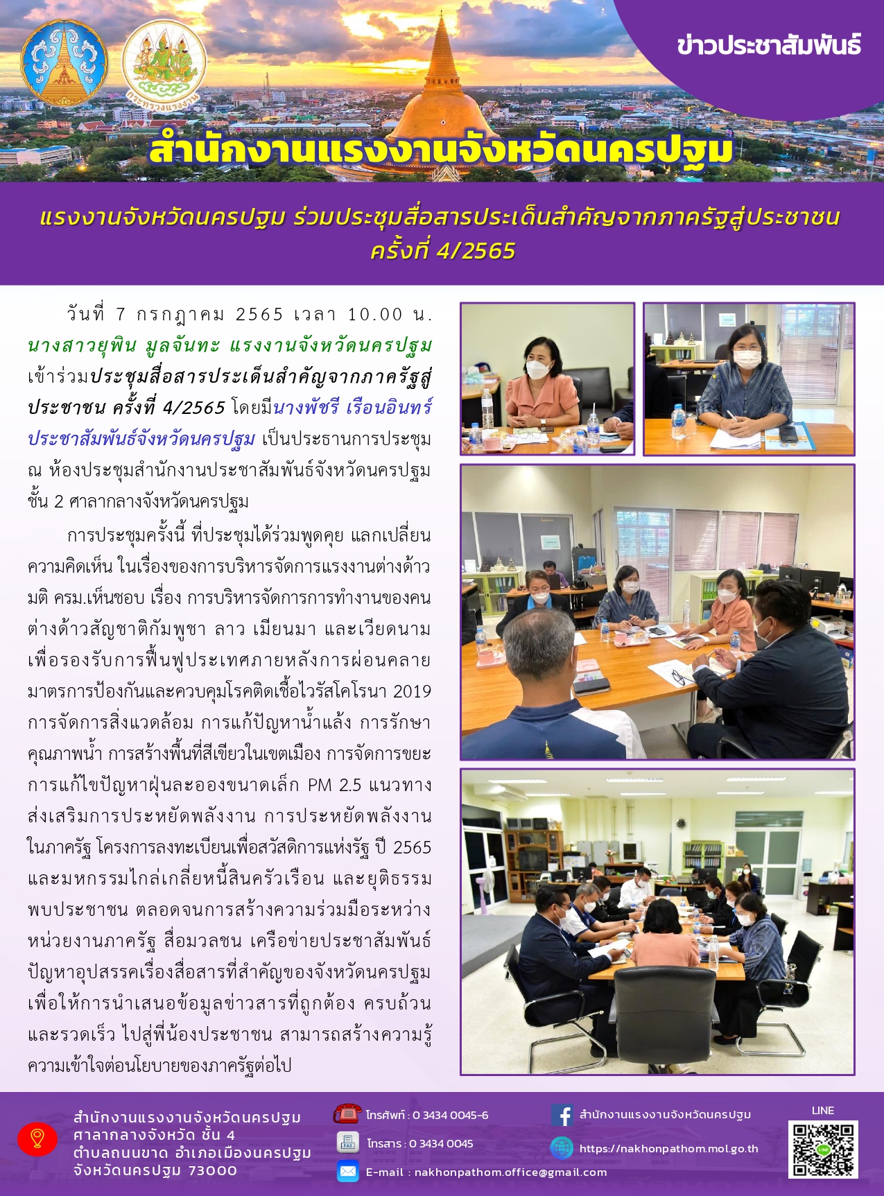 แรงงานจังหวัดนครปฐม ร่วมประชุมสื่อสารประเด็นสำคัญจากภาครัฐสู่ประชาชน ครั้งที่ 4/2565