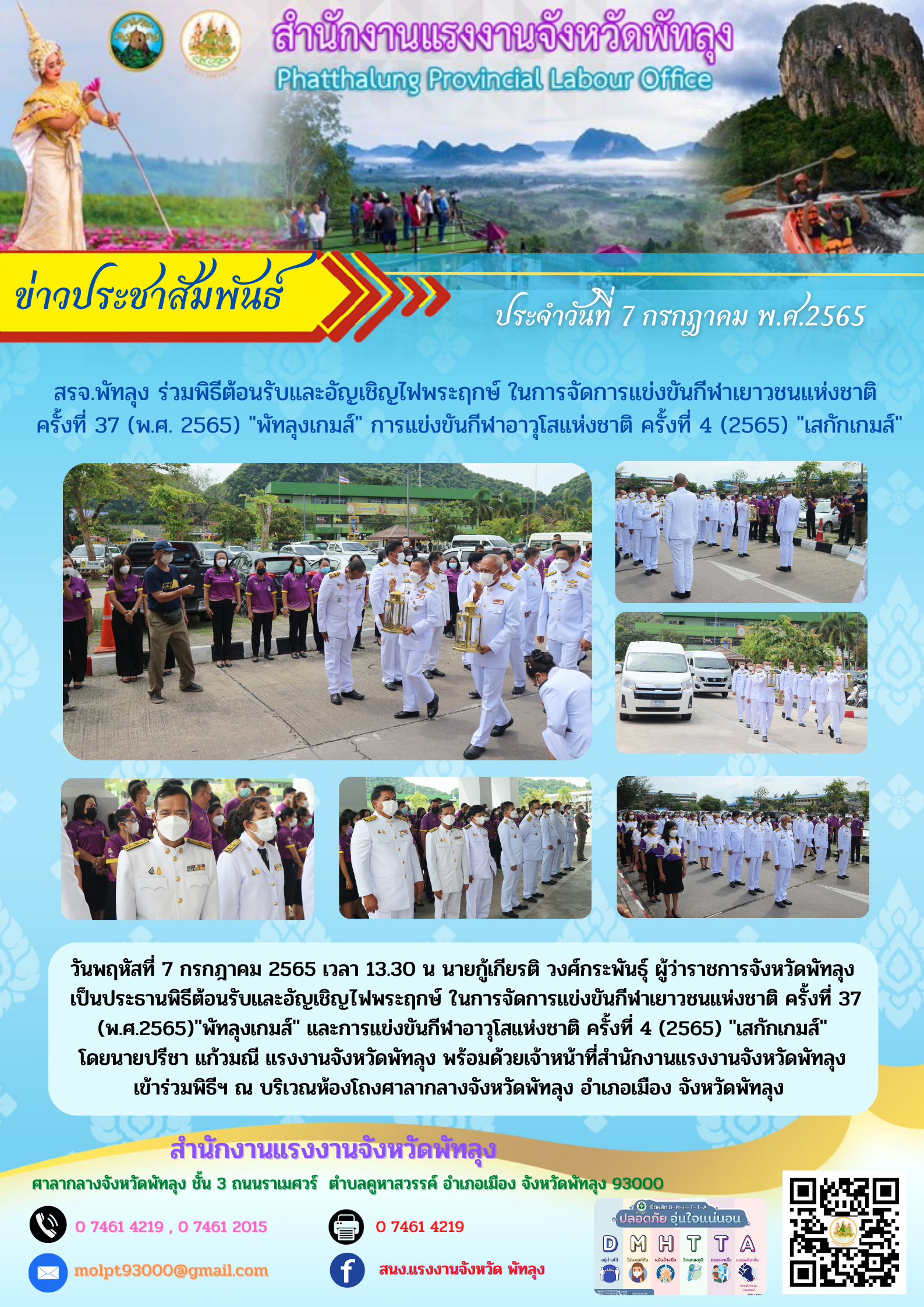 สรจ.พัทลุง ร่วมพิธีต้อนรับและอัญเชิญไฟพระฤกษ์ในการจัดการแข่งขันกีฬาเยาวชนแห่งชาติ ครั้งที่ 37 (พ.ศ. 2565) “พัทลุงเกมส์” การแข่งขันกีฬาอาวุโสแห่งชาติ ครั้งที่ 4 (2565) “เสกักเกมส์”