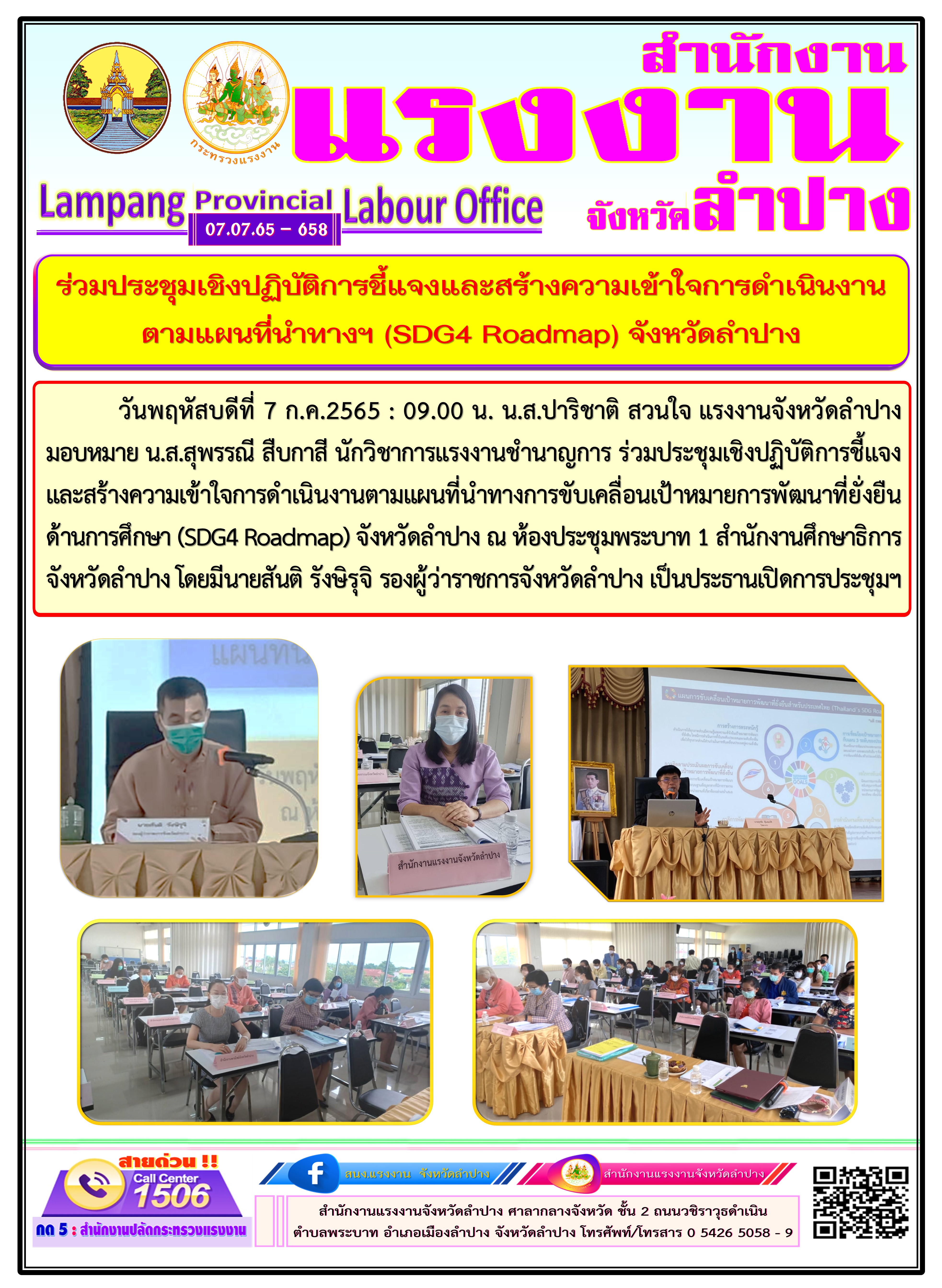 สรจ.ลำปาง ร่วมประชุมเชิงปฏิบัติการชี้แจงและสร้างความเข้าใจการดำเนินงานตามแผนที่นำทางฯ (SDG4 Roadmap) จังหวัดลำปาง