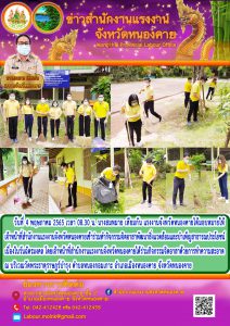 แรงงานจังหวัดหนองคายได้มอบหมายให้เจ้าหน้าที่สำนักงานแรงงานจังหวัดหนองคายเข้าร่วมทำกิจกรรมจิตอาสาพัฒนาสิ่งแวดล้อมและบำเพ็ญสาธารณประโยชน์เนื่องในวันฉัตรมงคล