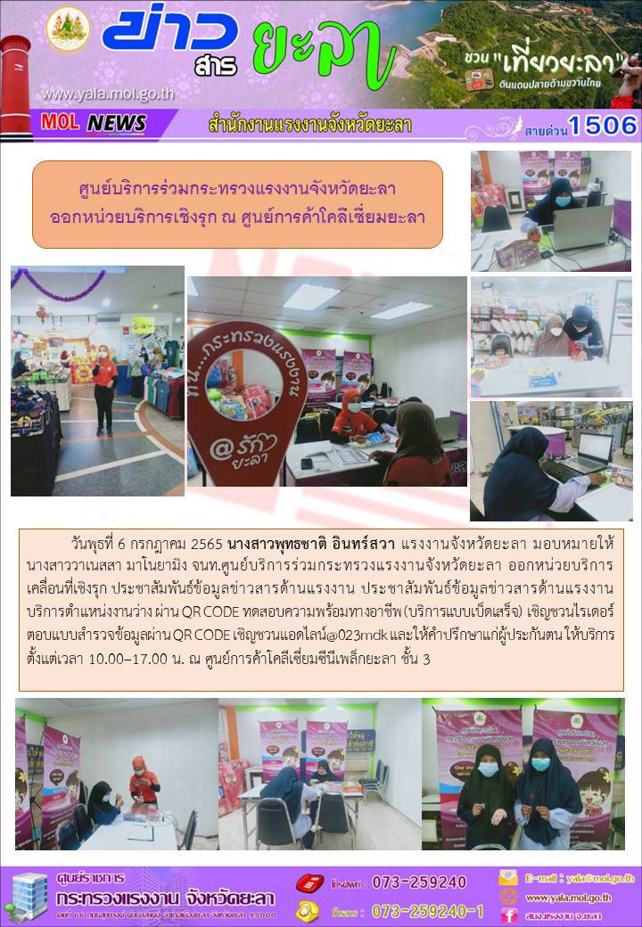 ศูนย์บริการร่วมกระทรวงแรงงานจังหวัดยะลา ออกหน่วยบริการเชิงรุก ณ ศูนย์การค้าโคลีเซี่ยมยะลา)