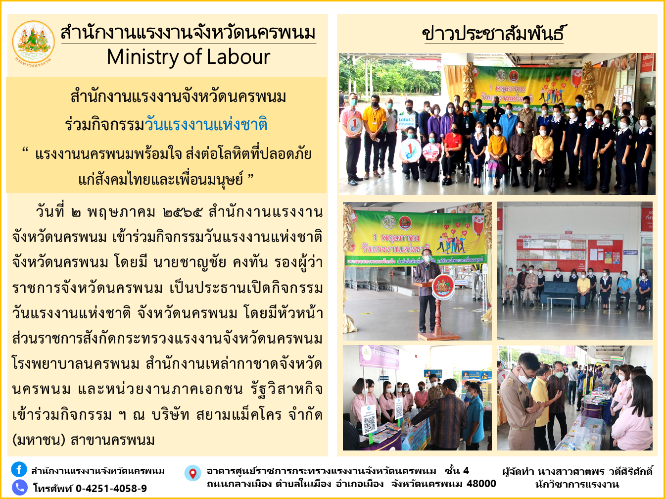 สำนักงานแรงงานจังหวัดนครพนม ร่วมกิจกรรมวันแรงงานแห่งชาติ จังหวัดนครพนม