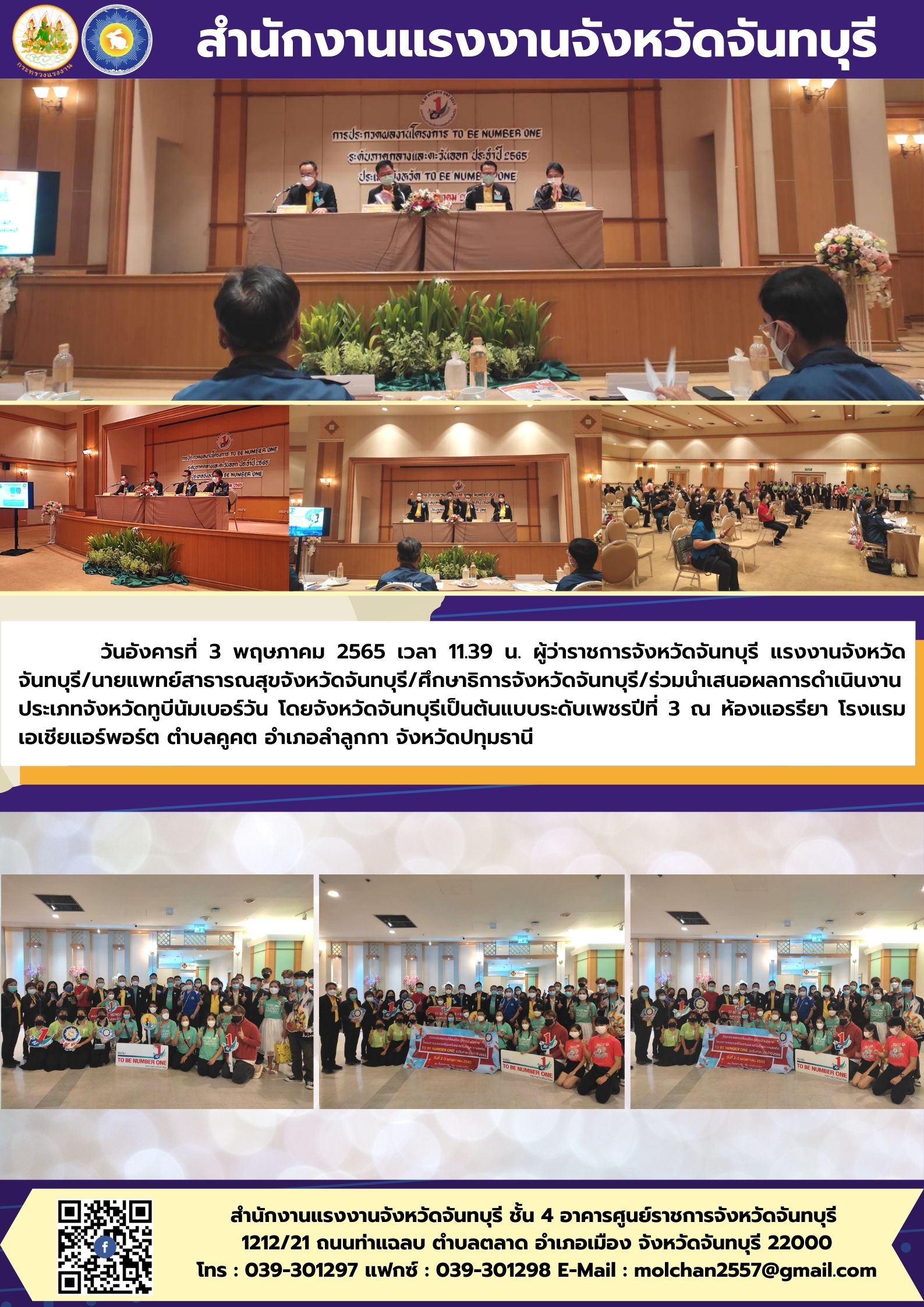 ผู้ว่าราชการจังหวัดจันทบุรี แรงงานจังหวัดจันทบุรี/ นายแพทย์สาธารณสุขจังหวัดจันทบุรี/ศึกษาธิการจังหวัดจันทบุรี/ ร่วมนำเสนอผลการดำเนินงานประเภทจังหวัดทูบีนัมเบอร์วัน