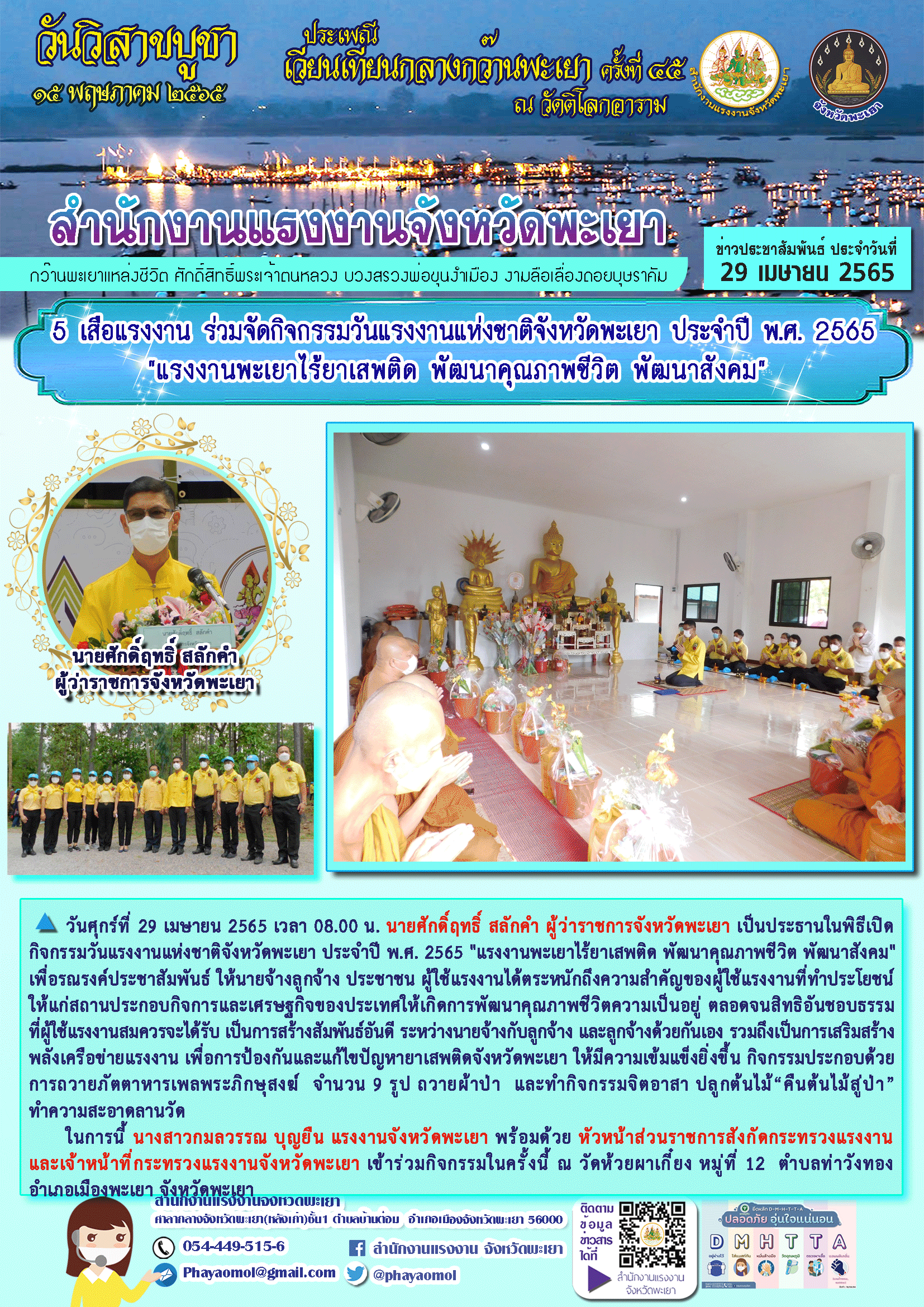 5 เสือแรงงาน ร่วมจัดกิจกรรมวันแรงงานแห่งชาติจังหวัดพะเยา ประจำปี พ.ศ. 2565 “แรงงานพะเยาไร้ยาเสพติด พัฒนาคุณภาพชีวิต พัฒนาสังคม”