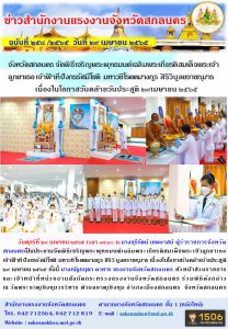 จังหวัดสกลนคร จัดพิธีเจริญพระพุทธมนต์เฉลิมพระเกียรติสมเด็จพระเจ้าลูกยาเธอ เจ้าฟ้าทีปังกรรัศมีโชติ มหาวชิโรตตมางกูร สิริวิบูลยราชกุมาร เนื่องในโอกาสวันคล้ายวันประสูติ 29 เมษายน 2565