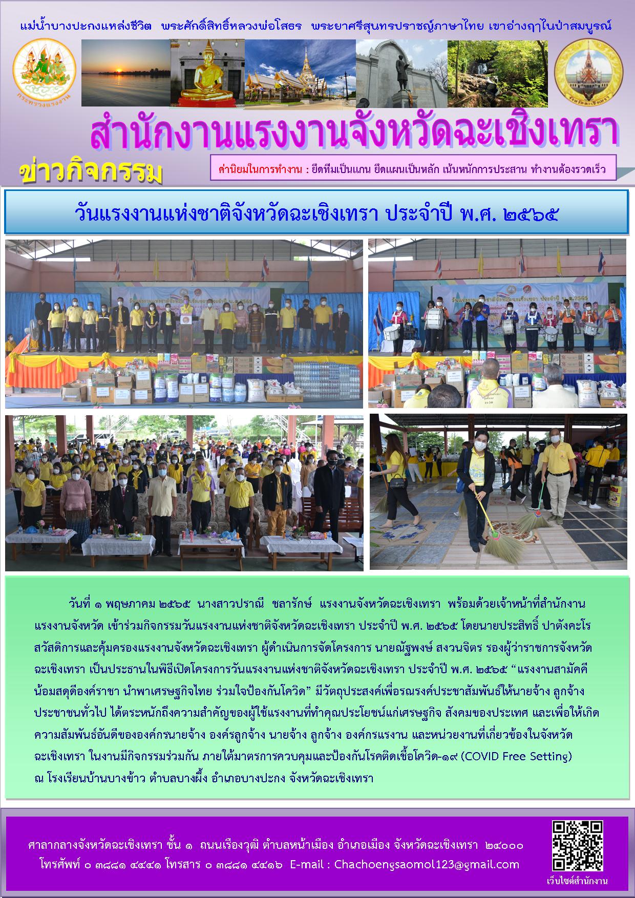 วันแรงงานแห่งชาติจังหวัดฉะเชิงเทรา ประจำปีงบประมาณ พ.ศ. 2565