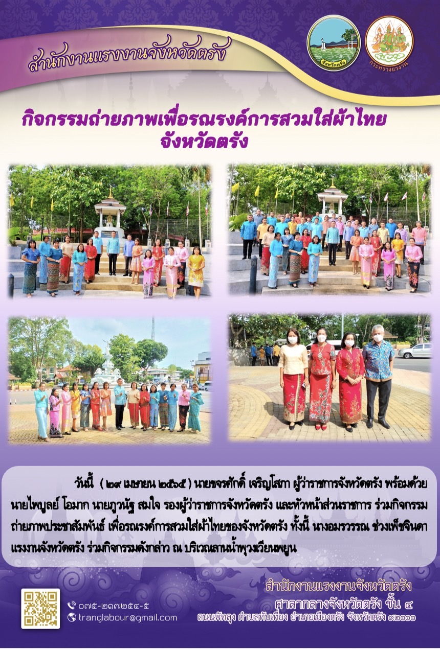 แรงงานจังหวัดตรัง ร่วมถ่ายภาพประชาสัมพันธ์เพื่อรณรงค์การสวมใส่ผ้าไทย