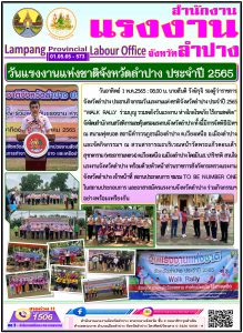 สรจ.ลำปาง ร่วมกิจกรรมวันแรงงานแห่งชาติจังหวัดลำปาง ประจำปี 2565 “WALK RALLY ร่วมบุญ รวมพลังวันแรงงาน ห่างไกลโรคภัย ไร้ยาเสพติด”