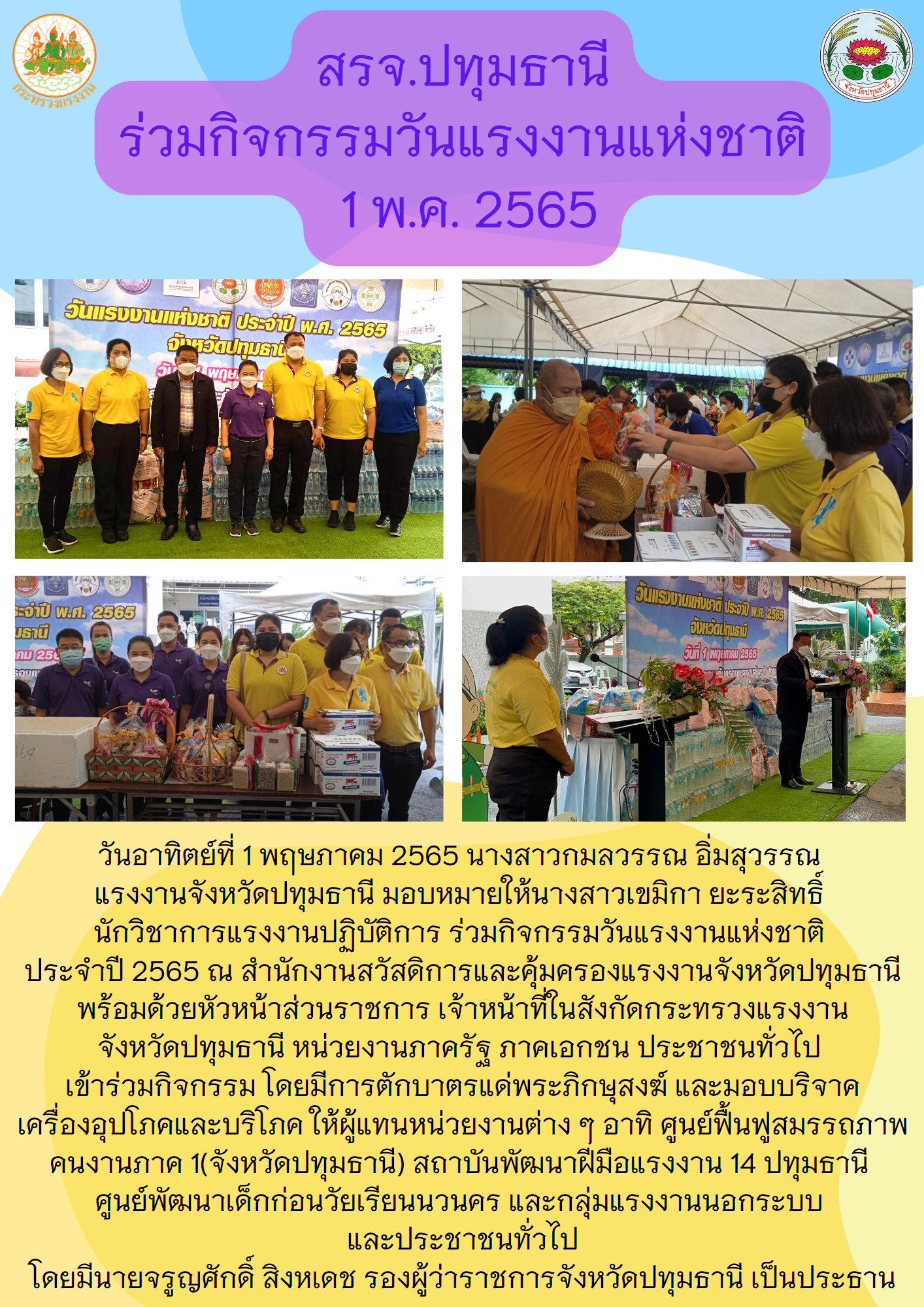 สรจ.ปทุมธานี ร่วมกิจกรรมวันแรงงานแห่งชาติ ประจำปี 2565
