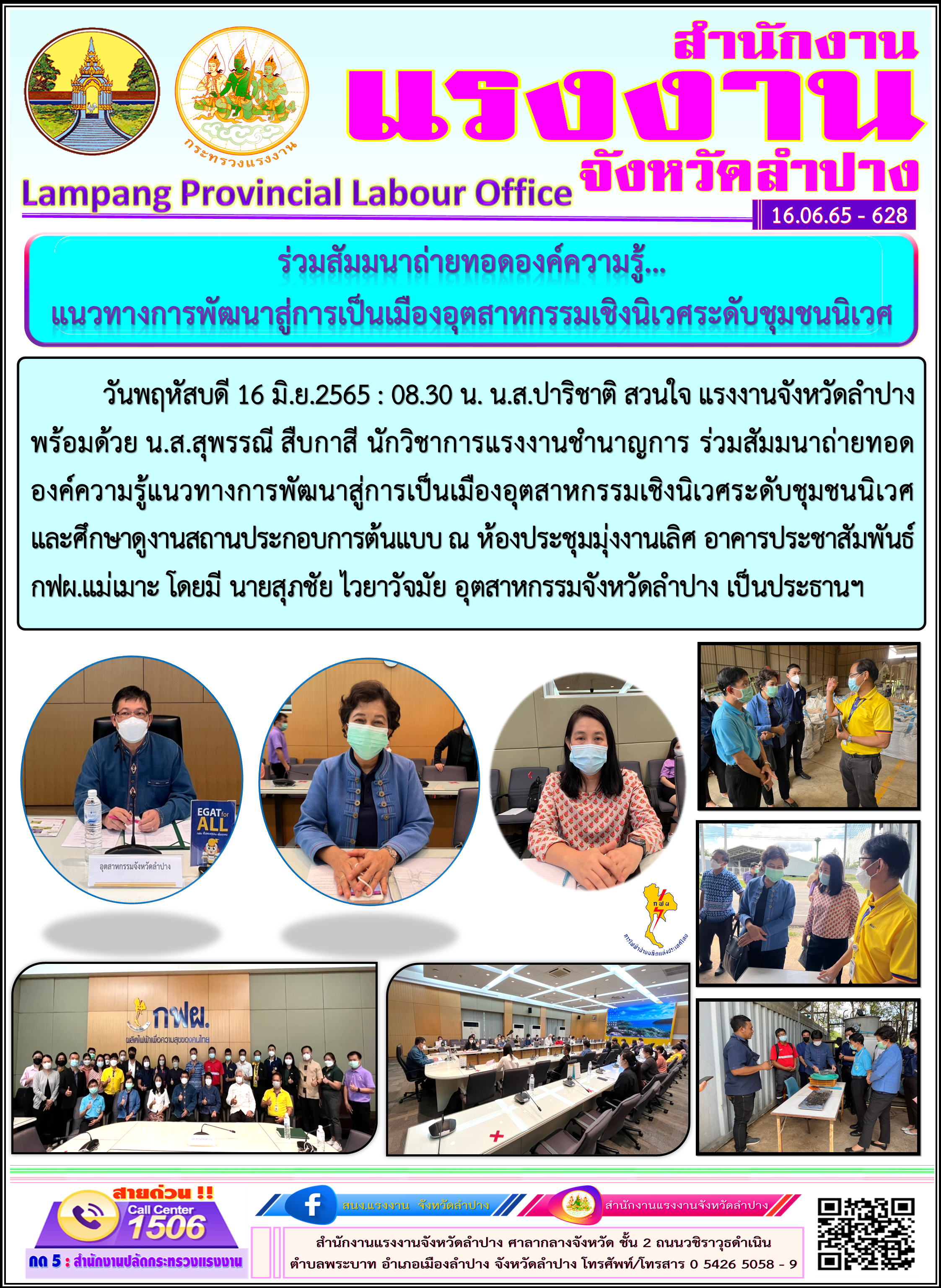 สำนักงานแรงงานจังหวัดแพร่ เข้าร่วมประชุมสรุปผลการดำเนินงาน ชุมชนนวัตกรรมเพื่อการพัฒนาอย่างยั่งยืน