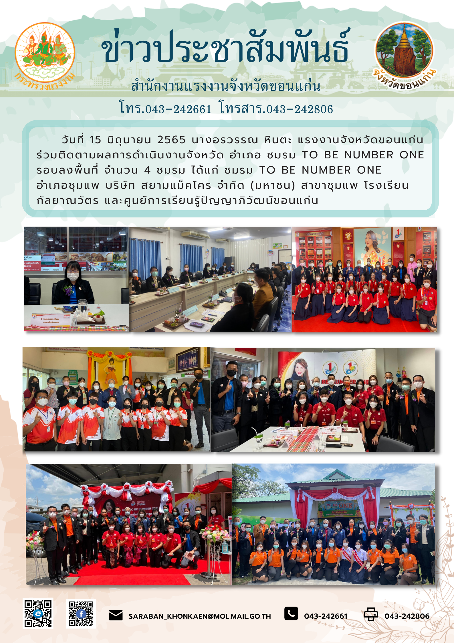 สำนักงานแรงงานจังหวัดขอนแก่น ร่วมติดตาม TO BE NUMBER ONE