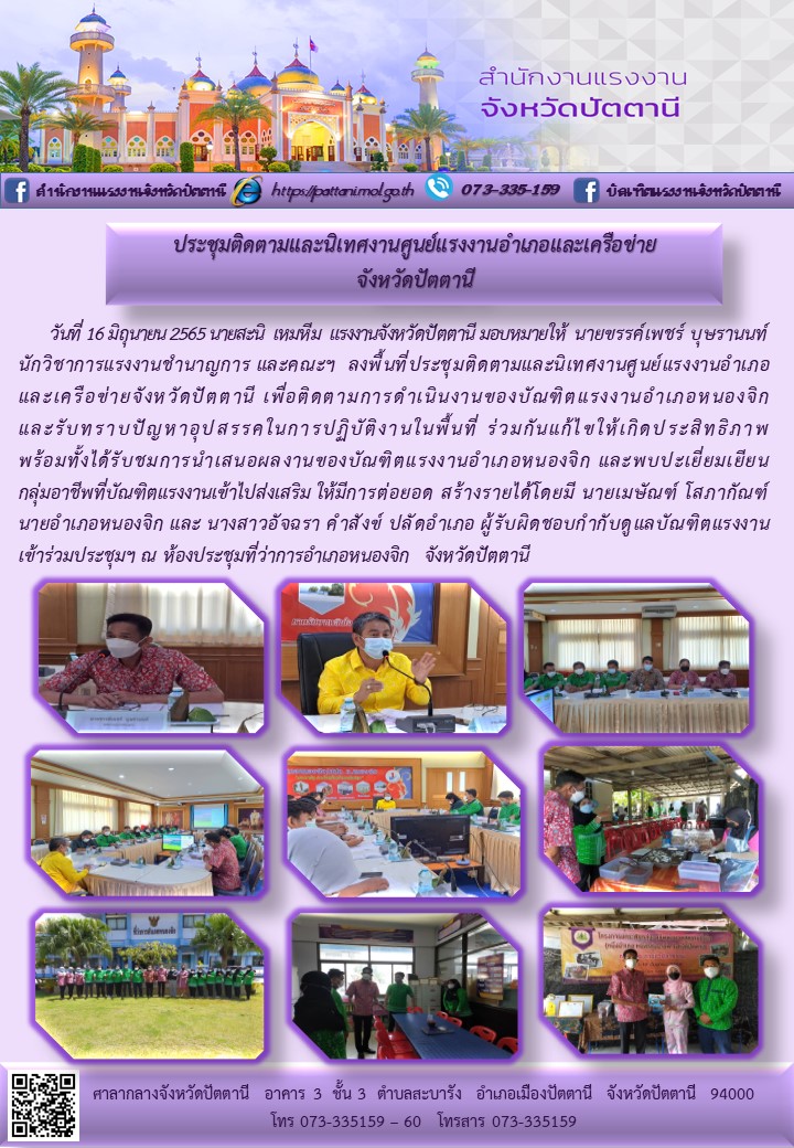 สรจ.ปัตตานี ร่วมประชุมติดตามและนิเทศงานศูนย์แรงงานอำเภอและเครือข่ายจังหวัดปัตตานี