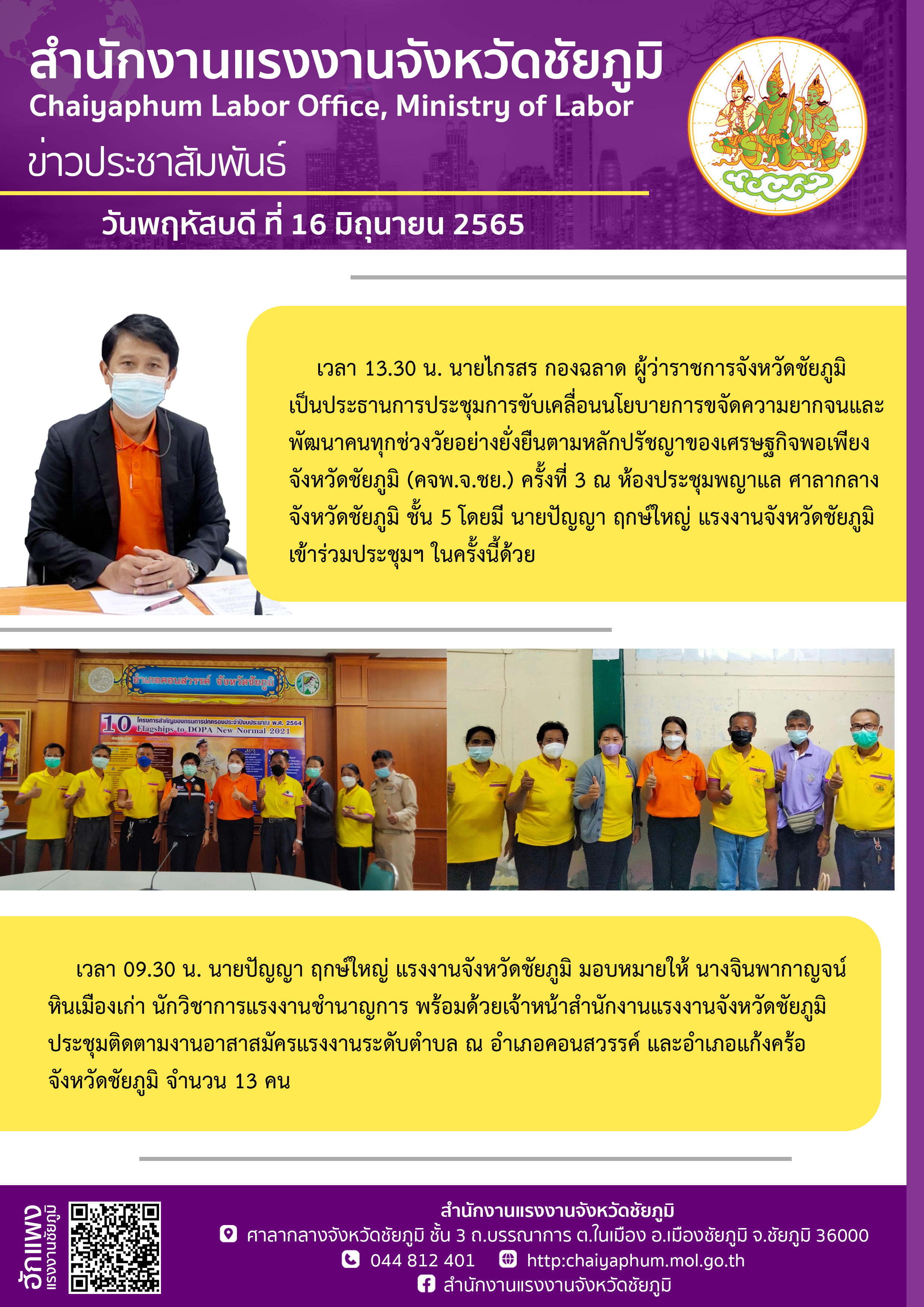 ภารกิจสำนักงานแรงงานจังหวัดนครราชสีมา ประจำวันที่ 16 มิถุนายน 2565