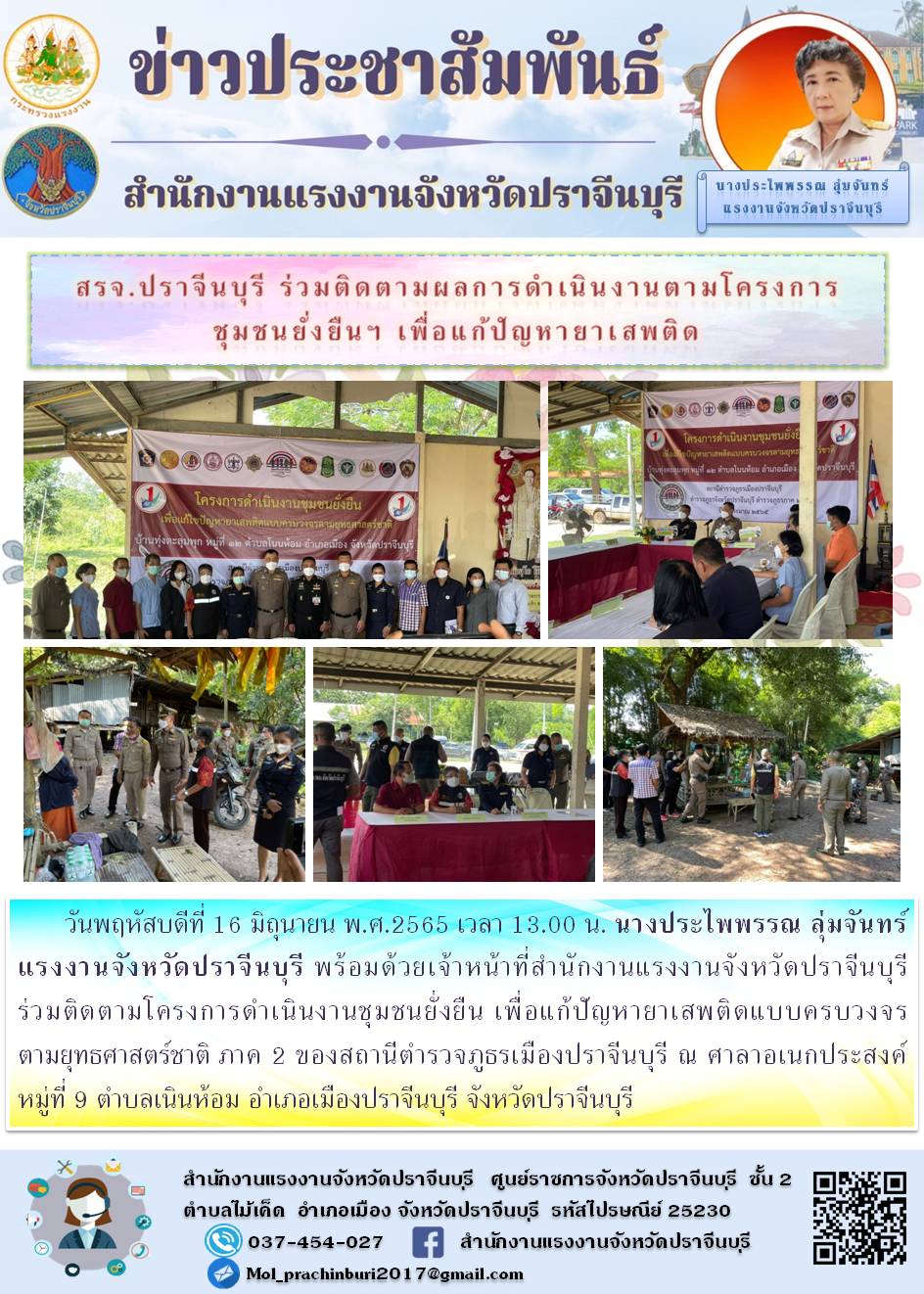 สรจ.ปราจีนบุรี ร่วมติดตามผลการดำเนินงานตามโครงการชุมชนยั่งยืนฯ เพื่อแก้ปัญหายาเสพติด