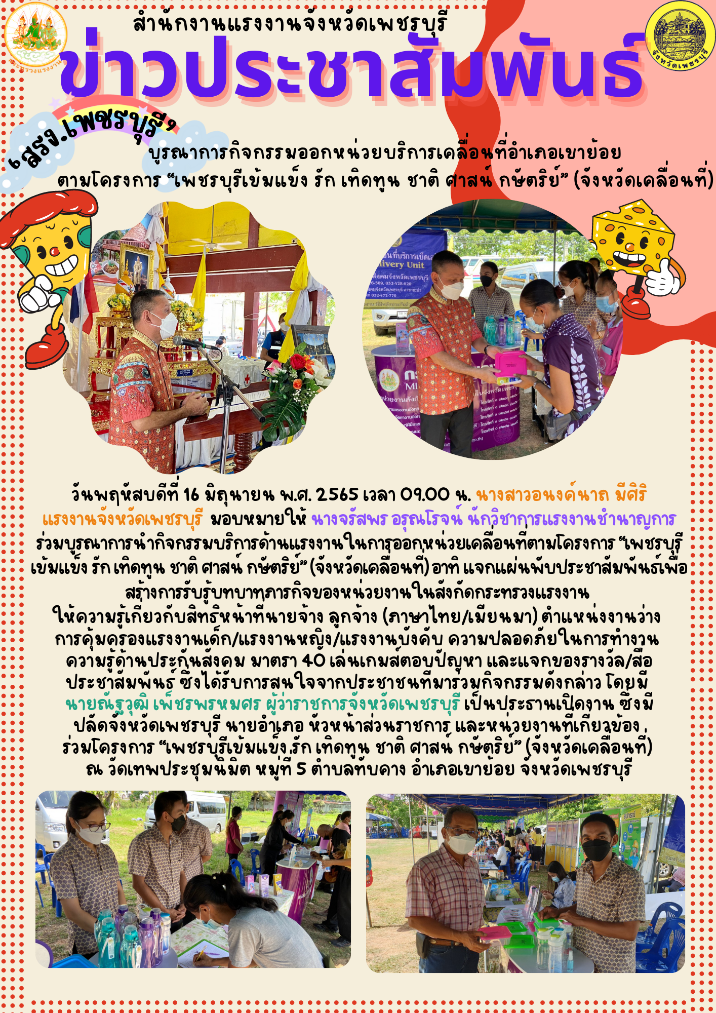 ‘สรจ.เพชรบุรี’ บูรณาการกิจกรรมออกหน่วยบริการเคลื่อนที่อำเภอเขาย้อย ตามโครงการ “เพชรบุรีเข้มแข็ง รัก เทิดทูน ชาติ ศาสน์ กษัตริย์” (จังหวัดเคลื่อนที่)