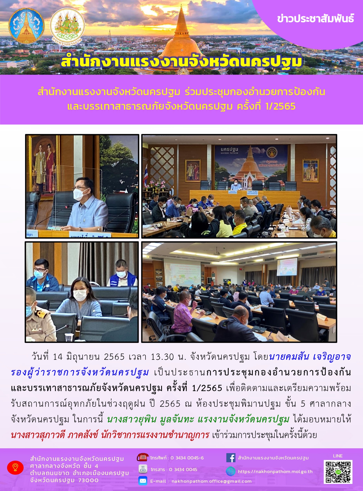 สำนักงานแรงงานจังหวัดนครปฐม ร่วมประชุมกองอำนวยการป้องกันและบรรเทาสาธารณภัยจังหวัดนครปฐม ครั้งที่ 1/2565