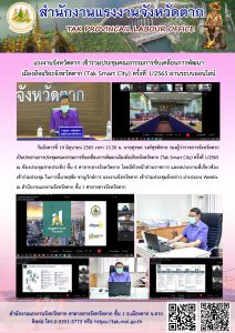 แรงงานจังหวัดตาก เข้าร่วมประชุมคณะกรรมการขับเคลื่อนการพัฒนาเมืองอัจฉริยะจังหวัดตาก (Tak Smart City) ครั้งที่ 1/2565 ผ่านระบบออนไลน์
