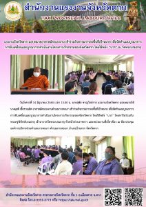 แรงงานจังหวัดตาก มอบหมายอาสาสมัครแรงงาน เข้าร่วมกิจกรรมการลงพื้นที่เป้าหมาย เพื่อจัดทำแผนบูรณาการการขับเคลื่อนและบูรณาการดำเนินงานโครงการ/กิจกรรมของจังหวัดตาก โดยใช้พลัง “บวร” ณ วัดพระบรมธาตุ