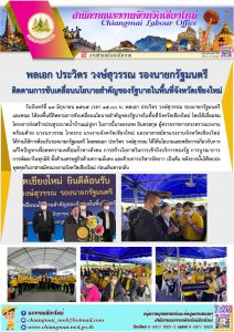แรงงานจังหวัดเชียงใหม่ พร้อมด้วยอาสาสมัครแรงงาน ร่วมต้อนรับ รองนายกรัฐมนตรี พลเอกประวิตร วงษ์สุวรรณ รองนายกรัฐมนตรี ในโอกาสตรวจราชการในพื้นที่จังหวัดเชียงใหม่