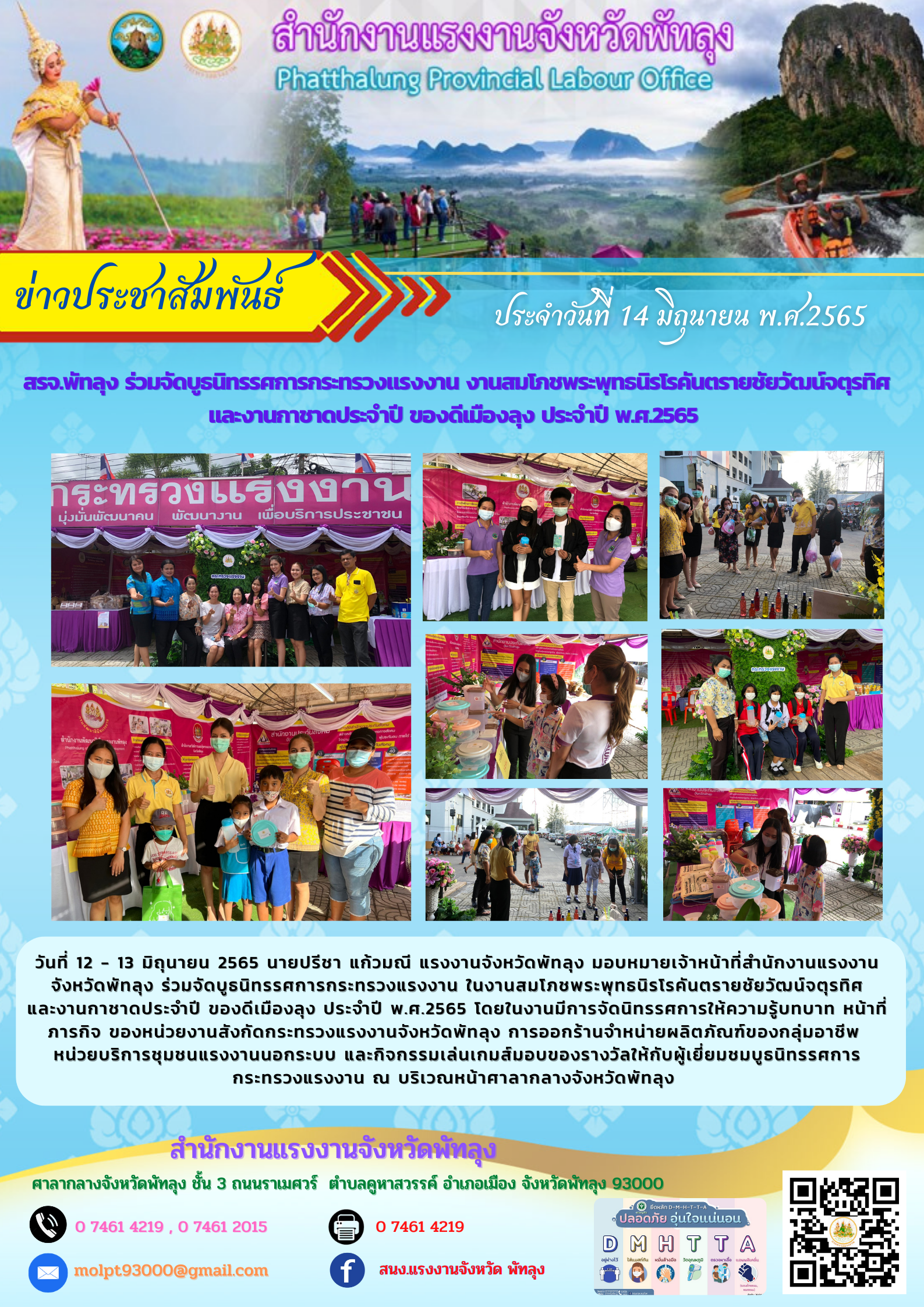 สรจ.พัทลุง ร่วมจัดบูธนิทรรศการกระทรวงแรงงาน งานสมโภชพระพุทธนิรโรคันตรายชัยวัฒน์จตุรทิศ และงานกาชาดประจำปี ของดีเมืองลุง ประจำปี พ.ศ.2565