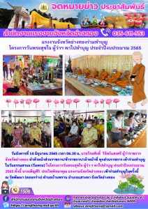 แรงงานจังหวัดอ่างทองร่วมทำบุญโครงการวันพระสุขใจ ผู้ว่าฯ พาไปทำบุญ ประจำปีงบประมาณ 2565