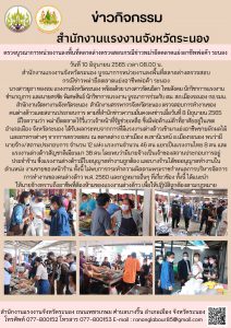 เปิดโครงการอาสาสมัครแรงงานต้านภัย ยาเสพติด กิจกรรมให้ความรู้ ปรึกษา แนะนำ เพื่อป้องกันและแก้ไขปัญหายาเสพติดในสถานประกอบการที่มีลูกจ้างต่ำกว่า 10 คนลงมา จังหวัดระนอง