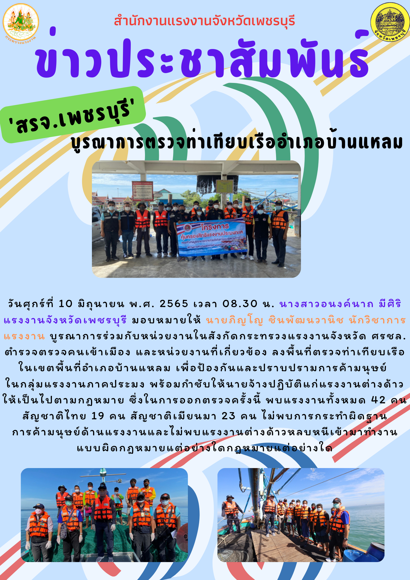 ‘สรจ.เพชรบุรี’ บูรณาการตรวจท่าเทียบเรืออำเภอบ้านแหลม