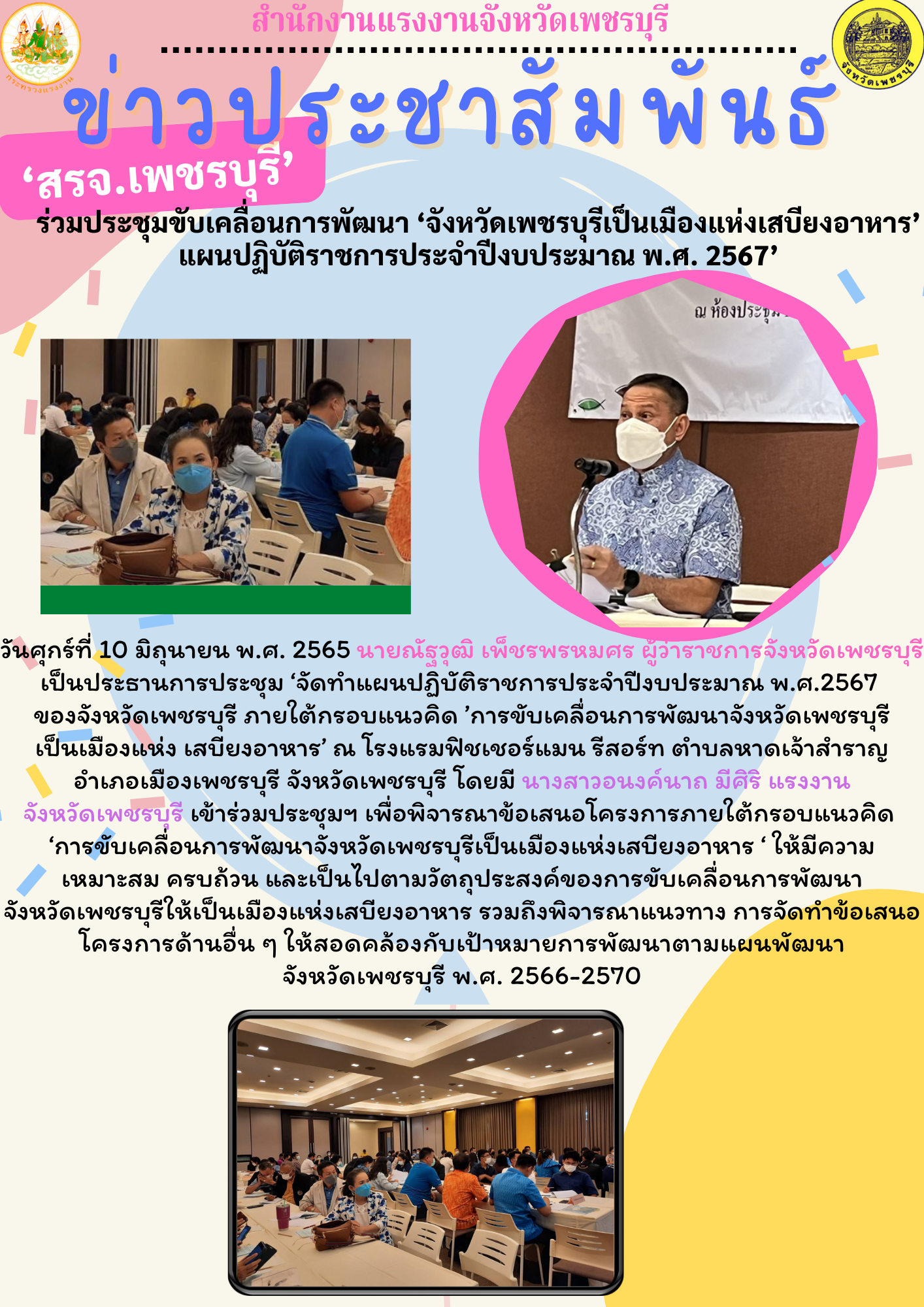 ‘สรจ.เพชรบุรี’ ร่วมประชุมขับเคลื่อนการพัฒนา ‘จังหวัดเพชรบุรีเป็นเมืองแห่งเสบียงอาหาร’ แผนปฏิบัติราชการประจำปีงบประมาณ พ.ศ. 2567’