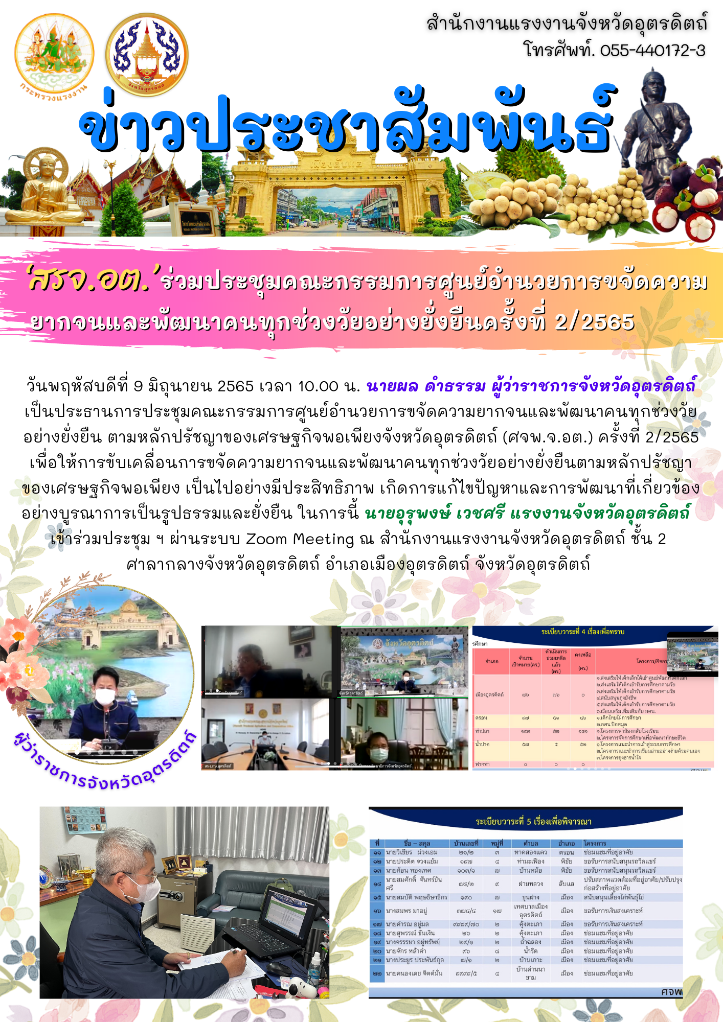 ‘สรจ.อต’ ร่วมประชุมคณะกรรมการศูนย์อำนวยการขจัดความยากจนและพัฒนาคนทุกช่วงวัยอย่างยั่งยืนครั้งที่ 2/2565