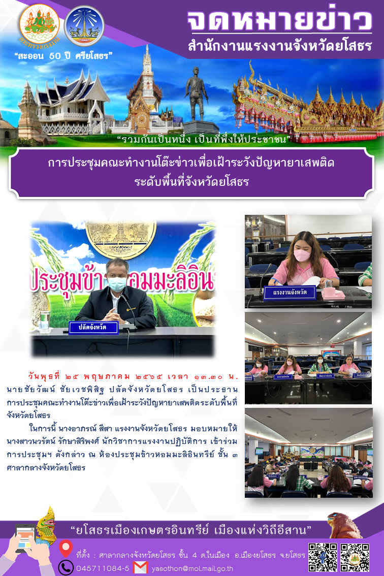 การประชุมคณะทำงานโต๊ะข่าวเพื่อเฝ้าระวังปัญหายาเสพติด ระดับพื้นที่จังหวัดยโสธร